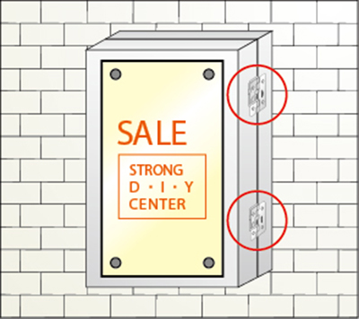 取付け方法はストロング掛金と同様で、両面テープを用いることにより、スムーズに取付けることができます。使用例