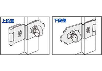 家庭用物置や倉庫など、柱と扉に段差のある箇所に最適です。ストロングストップ掛金 上・下段差対応型
