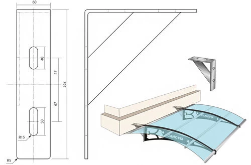 後付けのため軽く設計されており背面(天井)付けも可能です。壁面だけではなく背面(天井)につけることも可能な後付けひさし