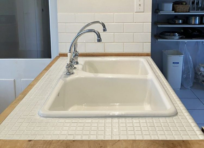 「タイルの企画・販売」 なら 「長江陶業 株式会社」へ! キッチン、洗面台まわりをタイルでリフォーム 個人邸施工例