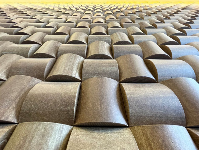 一枚一枚異なる木目柄を編み込み調に施し陰影を楽しむ…。