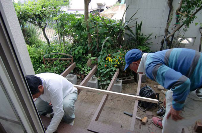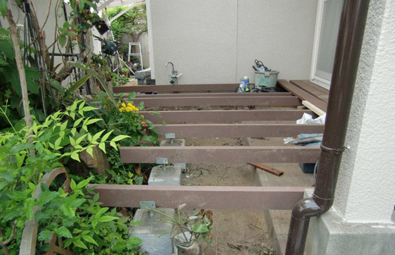 無垢柱材施工例「個人宅様ウッドデッキ(大阪府)」 大阪府のお客様宅のウッドデッキの施工例をご紹介します。