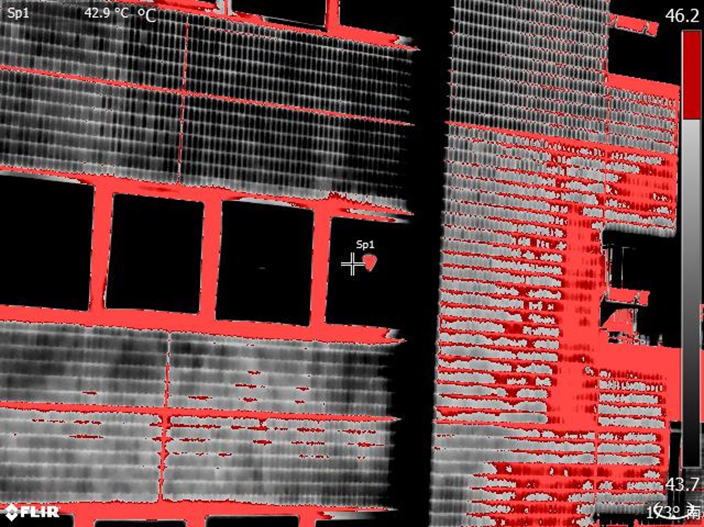 左の赤外線写真は、タイルの浮きがある外壁例です。