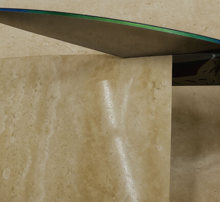 軽やかさと天然石の気品が融合した、次世代の超軽量天然石複合板『ライトストーンパネル・レジェロ』。 ![]() ![]() それ以外にも家具や壁に貼ることのできる3.5mm厚、床に貼ることのできる5mm厚の製品をご用意しています。くわしくはストーン・カバー工法もご覧ください。