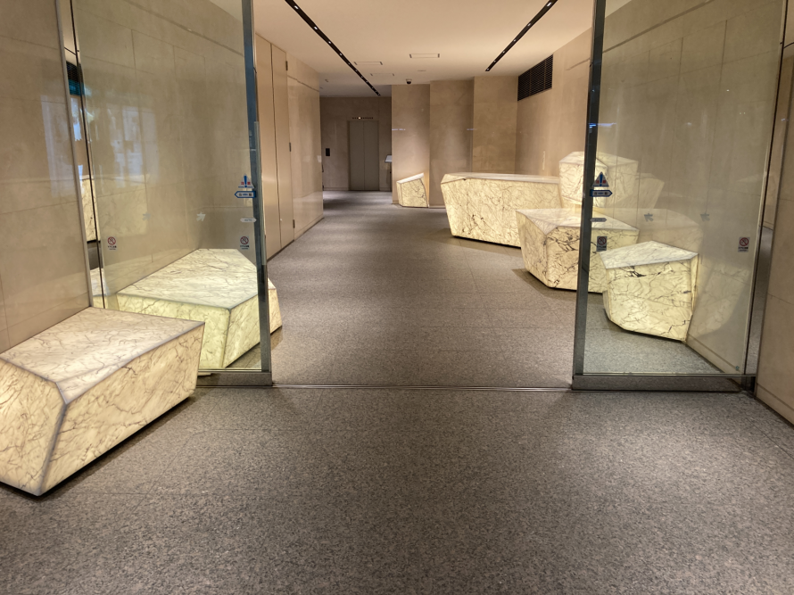 超軽量天然石複合板 ライト・ストーンパネル・レジェロ 今まで施工が困難だった高所壁面や天井にも貼ることができます。