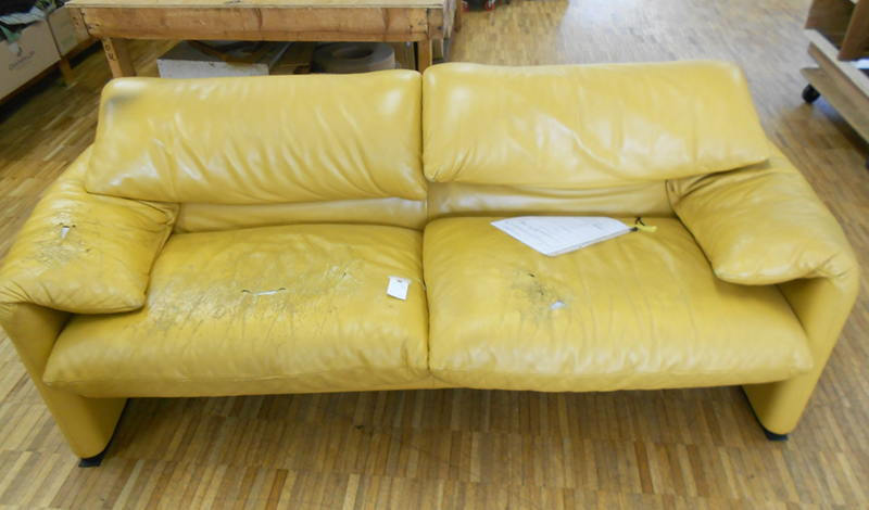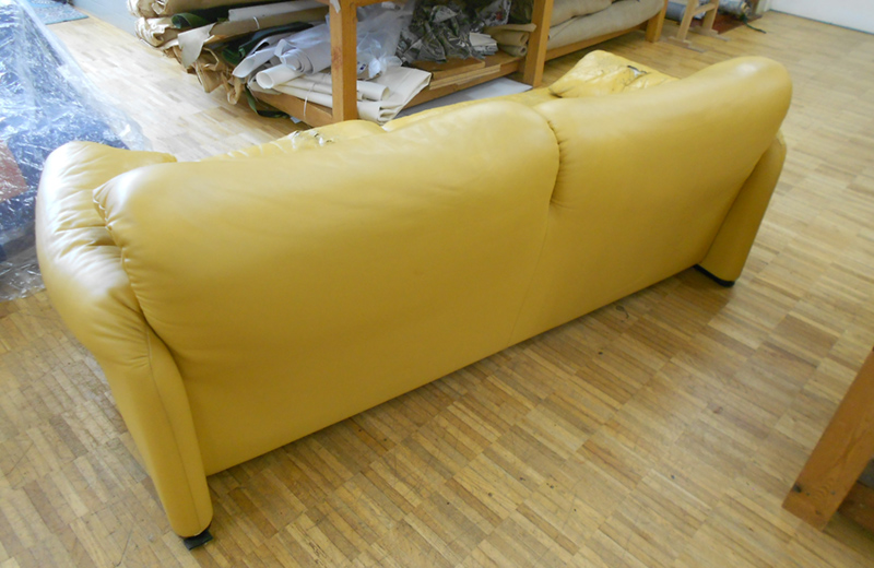 ダニエル 家具の病院 イタリア製カッシーナソファ張替修理 20年近くご使用されたカッシーナソファの皮の表面と中のクッションの劣化に伴い、張替を行いました。
