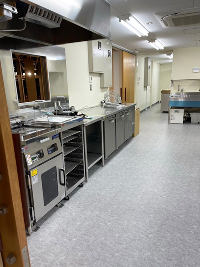 製パンに必要な様々な大型厨房機器や什器のセッティングを終えて厨房は工事完了