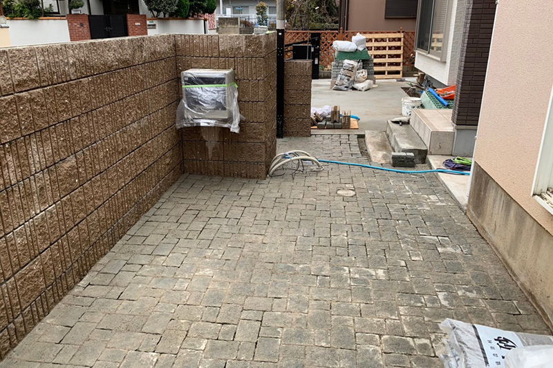 こちらの家は化粧ブロック壁を立てて庭にはピンコロ石を敷き詰めました