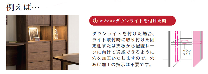 高さや幅、その他の加工、便利アイテムなど、すえ木工の壁面収納には、イージーオーダーとは思えないほど、お客様だけの製品をコーディネートする工夫が詰まっています。