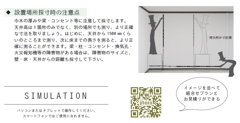 設置場所のサイズを指定して気になるアイテムを選んで並べるだけ設置イメージができる2Dシミュレーション。