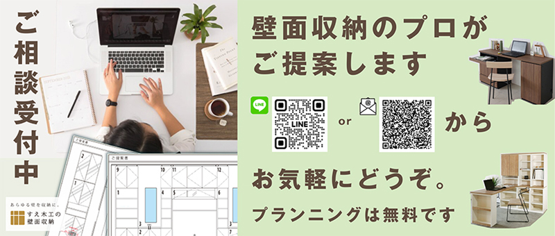 製造に関するすべての工程を国内自社工場にて行い、ご注文からお届け、アフターサービスまで”近くにいるからできること“を、お客様の安心に変える努力を続けます。 納入実績 15万5866件(2022年8月時点) シュミレーターを使ってレイアウトに挑戦すえ木工の壁面収納用シュミレーターを使えば、お部屋に合わせたプランをイメージすることができ、それに合わせて見積もりも作成することができます。