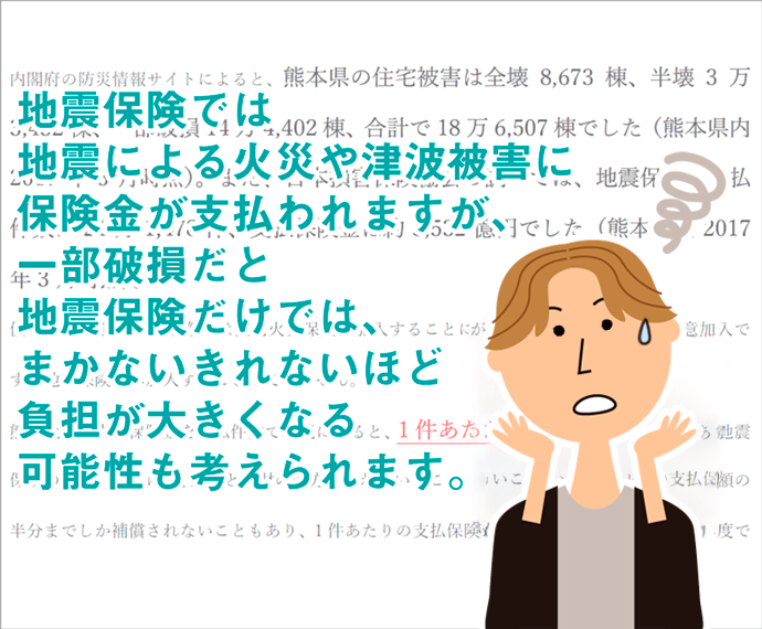 TEL:03-3527-1490 ![]() 担当:山田愛梨亜 住宅免震システム「スーパージオ工法保証」は損害額100%お支払い!業界初! ![]() ![]() ![]() ![]() ![]() 地盤自体の損壊修復費用 スーパージオ®工法による性能が発揮されずに、被害を受けた部分に限り、修復に必要な工事費用を全額お支払いします。 ![]() 賃貸費用(仮住まい) 工事中の仮住まいの賃貸費用を全額、家財の搬出費用(最大100万円)をお支払いします。 ![]() 初期対応費用 事故が起こった場合、工事に必要な調査費用もお支払いします。一回の事故につき、30万円を限度とします。事故現場保存費用、事故現場片付け費用など、初期対応の為に支出する費用を500万円を限度としてお支払いします。 ![]() ![]() 家財等の購入費用 事故により家財に被害を受けた場合、家財等の購入費最大100万円をお支払いします。 ![]() 治療費 医師が必要と認めた治療に対し、治療費の全額をお支払いします。 ![]() 休業損害 休業または休店せざるを得ない場合、収入に応じてお支払いします。 ![]() ![]() ![]() 『住宅免震システム「スーパージオ工法保証」は損害額100%お支払い!』
