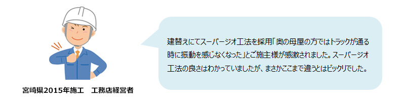 安心の住まいを 住宅免震システム「スーパージオ工法」の安全性実例 東日本大震災、熊本地震でも証明された安全性 工務店からユーザーまで、その効果は実感されています!