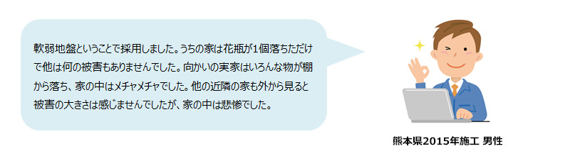 東日本大震災、熊本地震でも証明された安全性 工務店からユーザーまで、その効果は実感されています!安心の住まいを 住宅免震システム「スーパージオ工法」の安全性実例