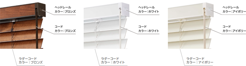 幅5cmのスラット(羽根)には、通常のラダーコード(スラット保持用コード)以外に、オプションで26色から選べるクロステープにすることもできます。