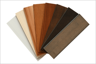 スラット幅は50mm、仕上げ色はウッドブラインドでポピュラーな標準8色で、杉材の木目や色の変化を生かした自然な表情を持つ仕上げです。特注色にも対応します。