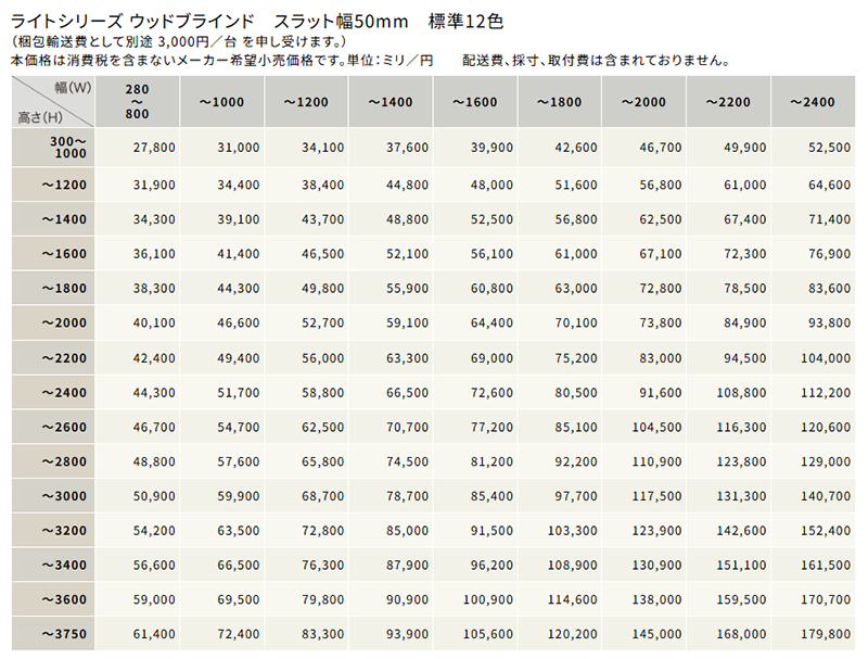 スラット幅は50mmです。