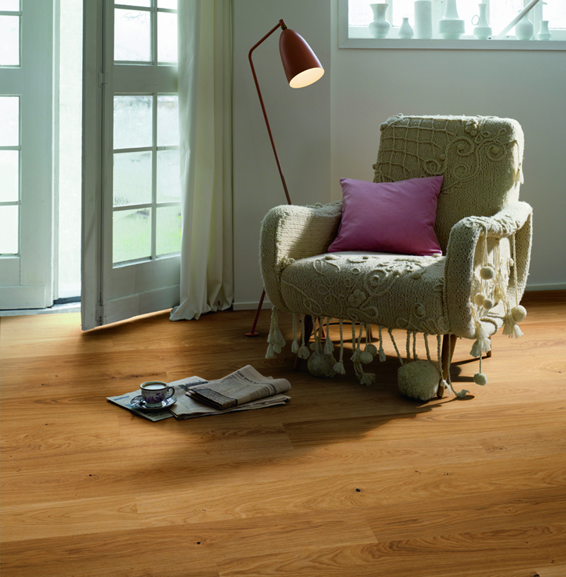 パラドールオークフルプランク(クリアー塗装とコルテーゼホワイト塗装)の住宅での施工事例です人に優しい無垢スタイル「パラドール」フローリング 施工事例