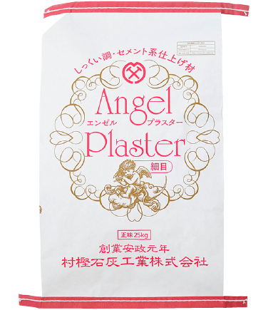 エンゼルプラスター[細目] 25kg/袋 白セメントを主原料とした内外装左官仕上げ材です。セメント系材料の特長である耐火・防火性能に優れています。無機系材料は紫外線に強く、外壁使用に最適です。コテ押さえにより、しっくい調に仕上がります。