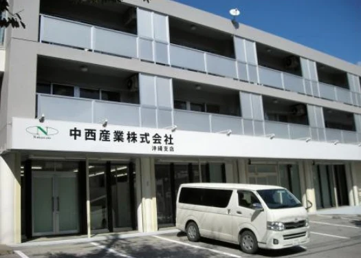 沖縄地区の営業拠点です。 1F左側から、事務所、応接、そして製品倉庫となっています。標準品の小売販売も致しております。