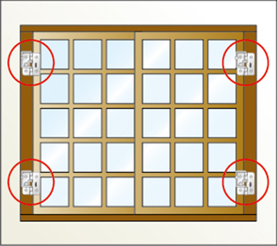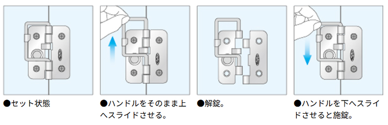 取付け方法はストロング掛金と同様で、両面テープを用いることにより、スムーズに取付けることができます。使用例
