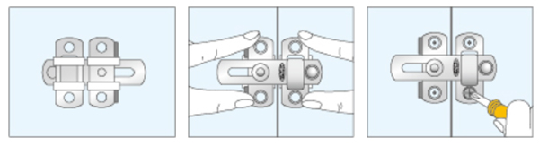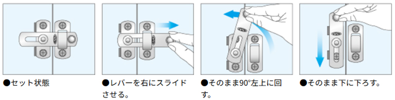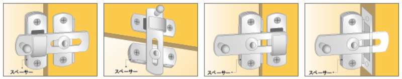 取付け手順はストロング掛金と同様で、両面テープを用いることにより、スムーズに取付けることができます。使用例