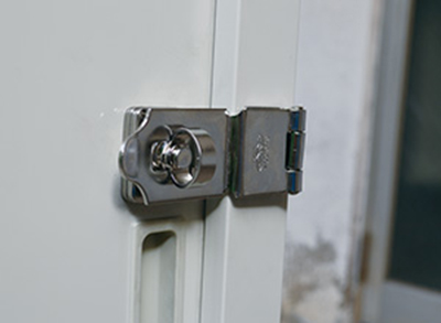 家庭用物置や倉庫など、柱と扉に段差のある箇所に最適です。ストロングストップ掛金 上・下段差対応型