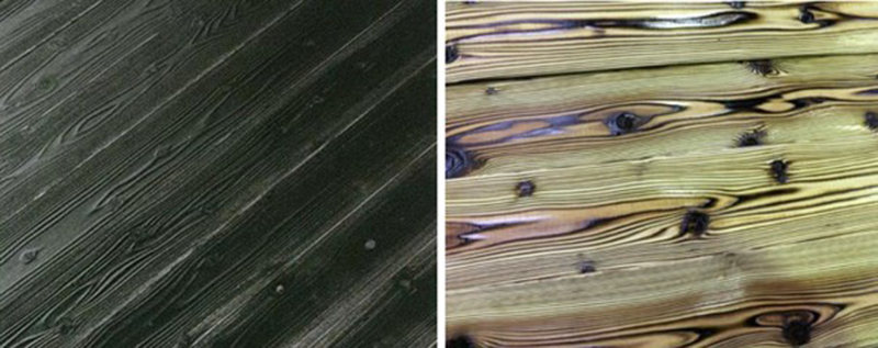 焼き杉の壁材 室内壁にも焼き杉