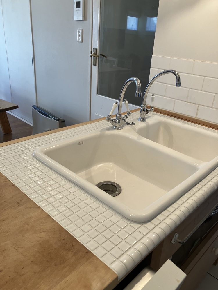 「タイルの企画・販売」 なら 「長江陶業 株式会社」へ! キッチン、洗面台まわりをタイルでリフォーム 個人邸施工例