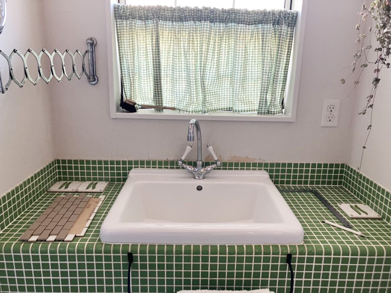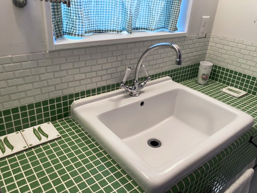 キッチンの流し台まわりと洗面室の洗面台まわりにモザイクタイルを施工していただきました!キッチン、洗面台まわりをタイルでリフォーム 個人邸施工例