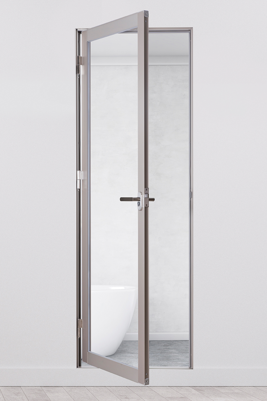 「浴室ドア、アルミ部材の加工販売」 なら 「近畿アルミニウム 株式会社」へ! 外開き框ドア SRDMシリーズガラス仕様の外開き框