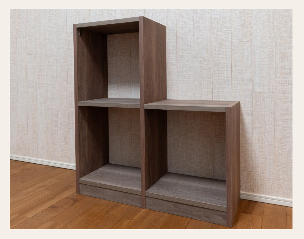 ちょっとした空間にも合わせやすいBOX型の棚。