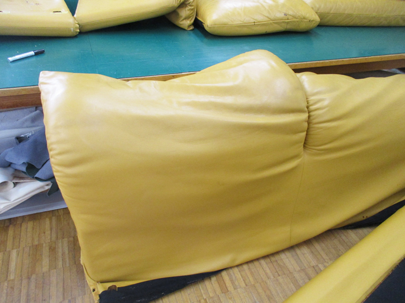 ダニエル 家具の病院 イタリア製カッシーナソファ張替修理 20年近くご使用されたカッシーナソファの皮の表面と中のクッションの劣化に伴い、張替を行いました。