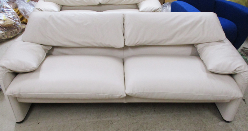 20年近くご使用されたカッシーナソファの皮の表面と中のクッションの劣化に伴い、張替を行いました。ダニエル 家具の病院 イタリア製カッシーナソファ張替修理