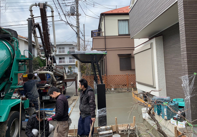こちらの家は整地したカーポートににコンクリート打設しました