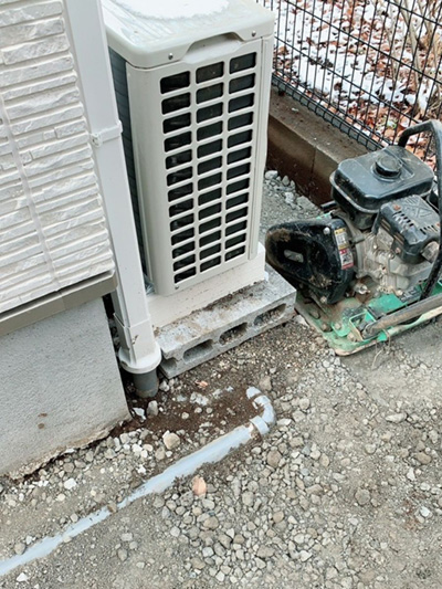 建物まわりの犬走を整地してコンクリート打設をします