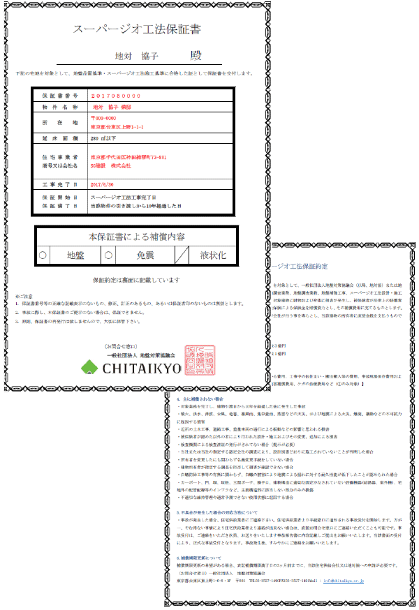 業界初!地盤保証、免震保証、液状化保証!最長30年間、最大1億円の損害額!住宅免震システム「スーパージオ工法保証」は損害額100%お支払い!