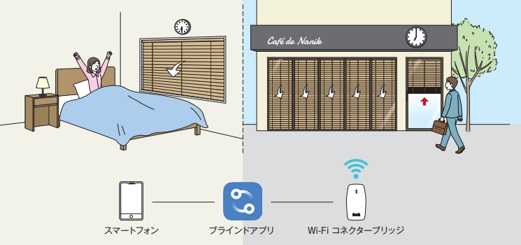 電動システムには、お持ちのスマートフォンやタブレット端末を用いてタイマー設定や遠隔操作をすることも可能です。 豊富なシリーズとカラーバリエーションナニックの横型の木製ブラインドは、お客様のニーズに合わせた6種類のシリーズがあります。