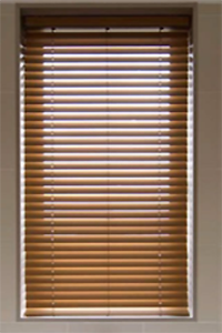 バスウッド(シナの木)の無垢材を用いたウッドブラインドで、スラット(羽根)の幅が50mmのスタンダードシリーズです。