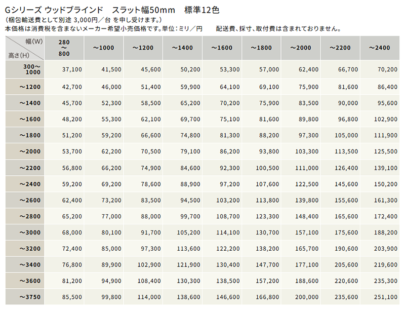 スラット幅は50mmです。