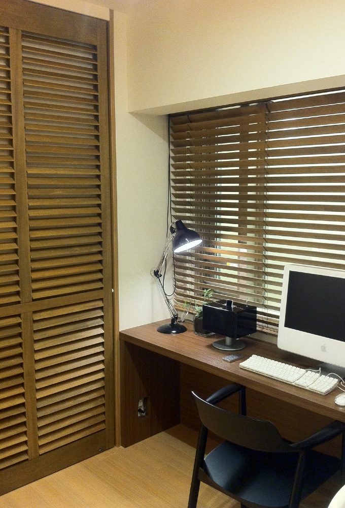 担当:武田 博美 ウッドブラインド施工事例「ホームオフィス」ホームオフィスにウッドブラインド ご自宅のデスクコーナーの窓をウッドブラインドに・・・