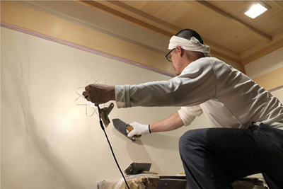 しっくい専科では、お客様の前で施工担当者が実際に試し塗りによる事前打ち合わせを行います。小さな塗り見本でイメージされた物と、試し塗りの結果が合致しているか確認後、実施工に入りますので、安心して完成までお待ちいただけます。 職人紹介