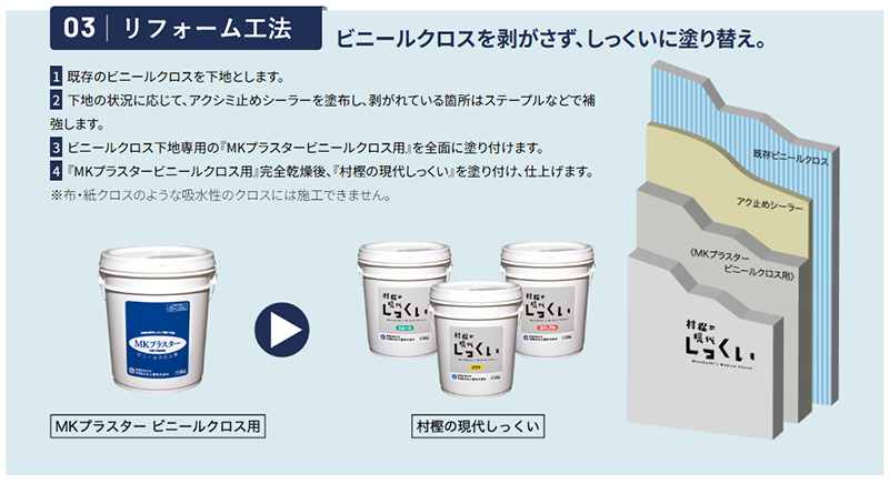 栃木県で創業以来170年にわたり、消石灰・しっくいの製造販売を主業としてきた村樫石灰工業のしっくい製品での施工が基本となります。