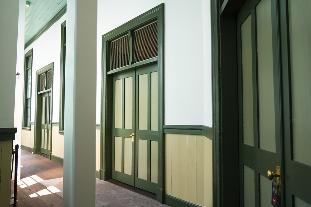 記念館の建物は、明治8年(1875年)に建てられた旧・睦沢学校の校舎を移築・保存したもので、昭和42年(1967年)に国の重要文化財に指定されています。 東京駅丸の内改札口天井『しっくいがつくる、欧風スタイル』