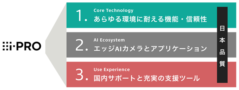 「i-PRO」が選ばれ続ける理由i-PRO商品は日本国内で開発され、販売から設置、運用までの質の高い充実したサポートを国内で行っています。