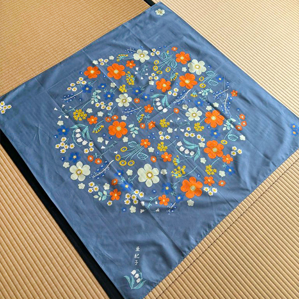 卒業に際し、青年部から贈られたのが、こちらの花の柄に名入れされた風呂敷です。